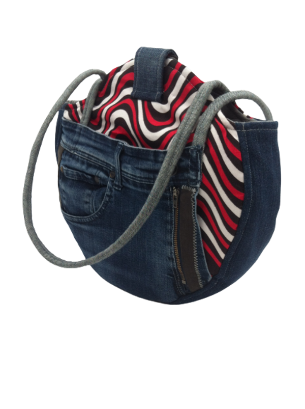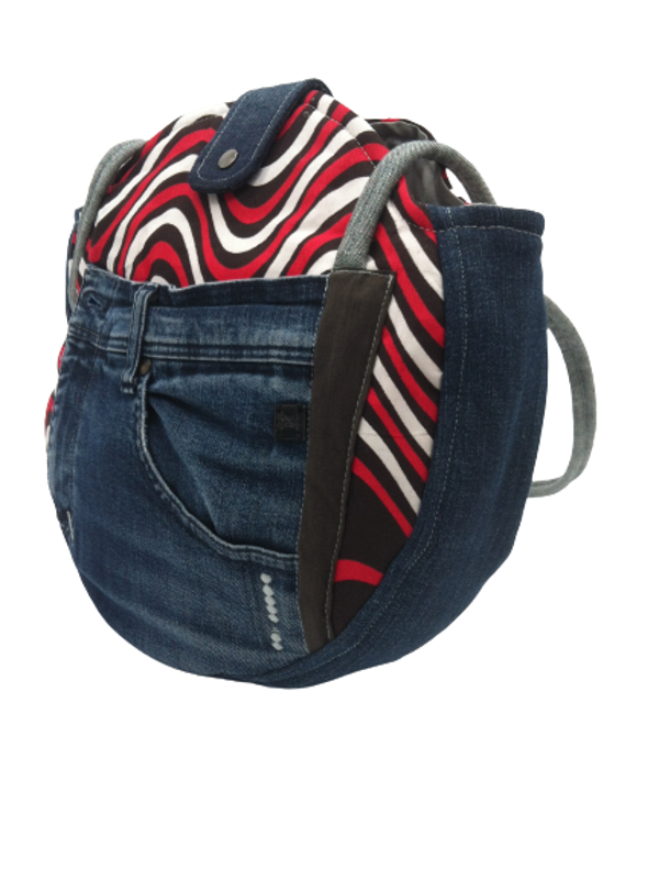sac fait main à partir de jeans recyclés et de tissus imprimés